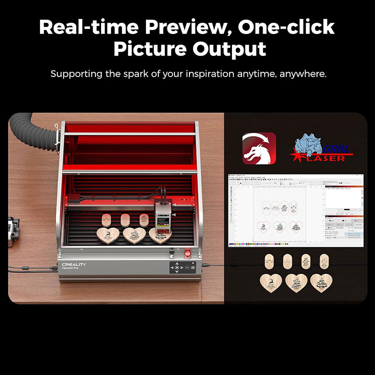 · ❤【 Bulit-in-kamera med intelligent fokus】-Creality 40W lasergraver og kuttermaskin med praktisk stor plass batch automatisk posisjoneringsfunksjon, innebygd et kamera over midten av produktet i skjoldet, USB koblet til datamaskinen, forhåndsvisning av bildet intuitivt og effektivt, forbedrer suksessraten for skapelsen betydelig. Sammenlignet med andre, trenger brukere ikke lenger å måle avstanden mellom forskjellige verk manuelt, og kan betjenes intelligent med en nøkkel!