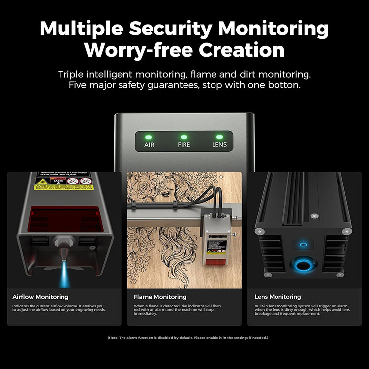 · ❤【 Klasse 1 Sertifisert og flere sikkerhetsbeskyttelse】-Creality Falcon2 Pro 40W lasergraver for tre og metall er utstyrt med en flammedetektor, dobbel trådgrensebryter, sikkerhetslås, nødstoppknapp og laserdeteksjon dekker fem sikkerhetsfunksjoner. I tillegg kan gjennomsiktig design, en full metallramme, fullt lukket struktur, dekket med brannsikkert fiberdekke, til å isolere røyk, støv og støy under opprettingsprosessen, slik at du kan vie deg til arbeidet ditt!