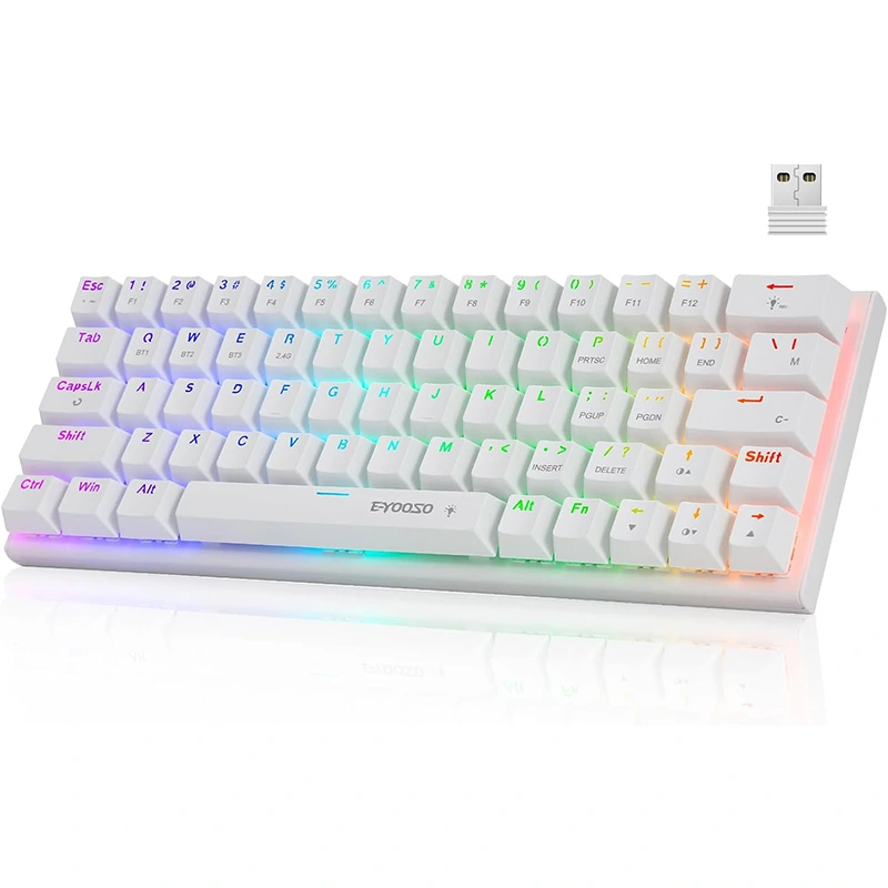 Følgende er en introduksjon til EYOOSO Z-11 63 Key RGB bakgrunnsbelyst trådløst 2,4GHz Mekanisk gaming-tastatur, jeg håper å hjelpe deg med å forstå firemodelltastaturet bedre. Velkommen nye og gamle kunder til å fortsette å samarbeide med oss for å skape en bedre fremtid sammen!