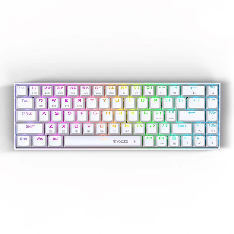 Du er velkommen til å komme til fabrikken vår for å kjøpe det siste salgs-, lavpris- og høykvalitets 68 Key RGB trådløst BT 2.4GHz Mechanical Gaming-tastatur for PC-bærbare spillere. Vi ser frem til å samarbeide med deg.