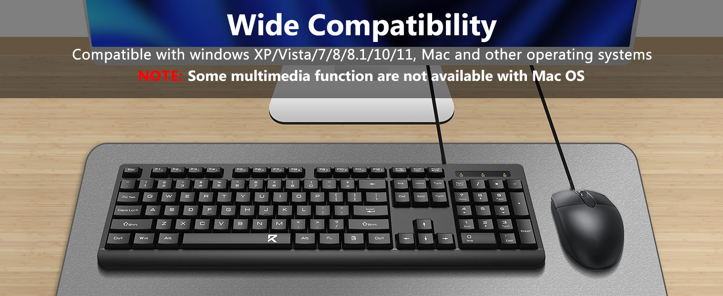 Black BC7543 Wired Keyboard and Mouse Combo er kompatibel med mange stasjonære og bærbare systemer.