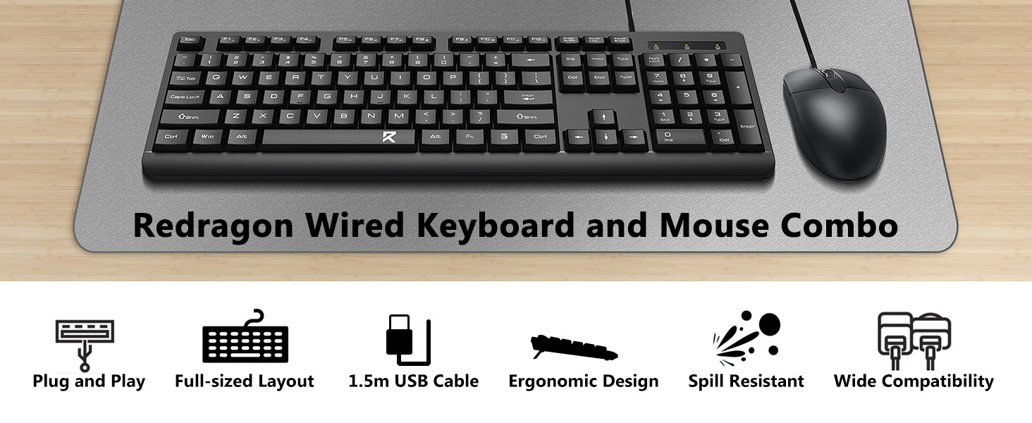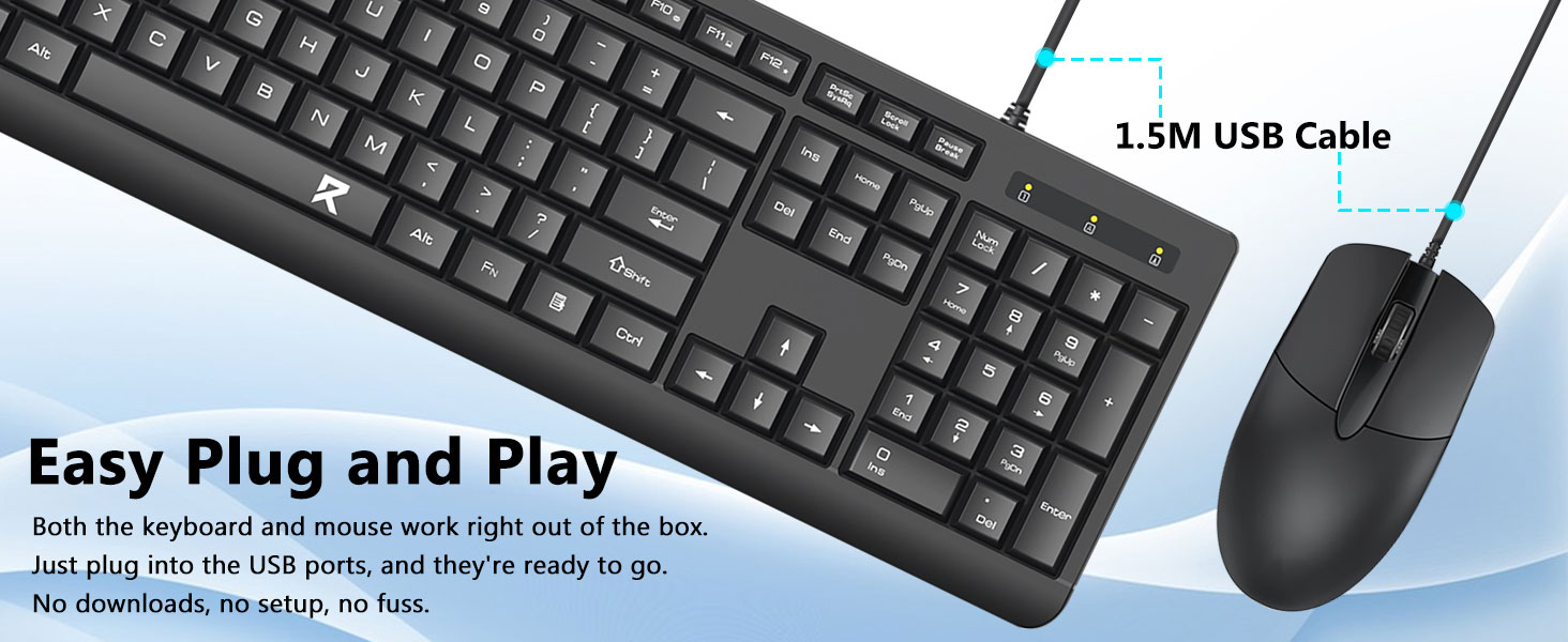 Plug-and-play-funksjonalitet lar brukere koble til tastaturet og musen raskt uten å installere ekstra programvare.