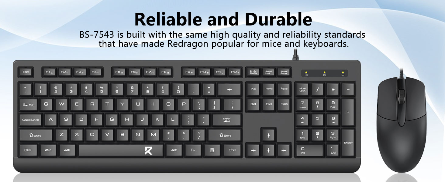 Den kablede USB-tilkoblingen sikrer stabil ytelse uten avbrudd, noe som gjør Black BC7543 Wired Keyboard and Mouse Combo egnet for profesjonelle miljøer.