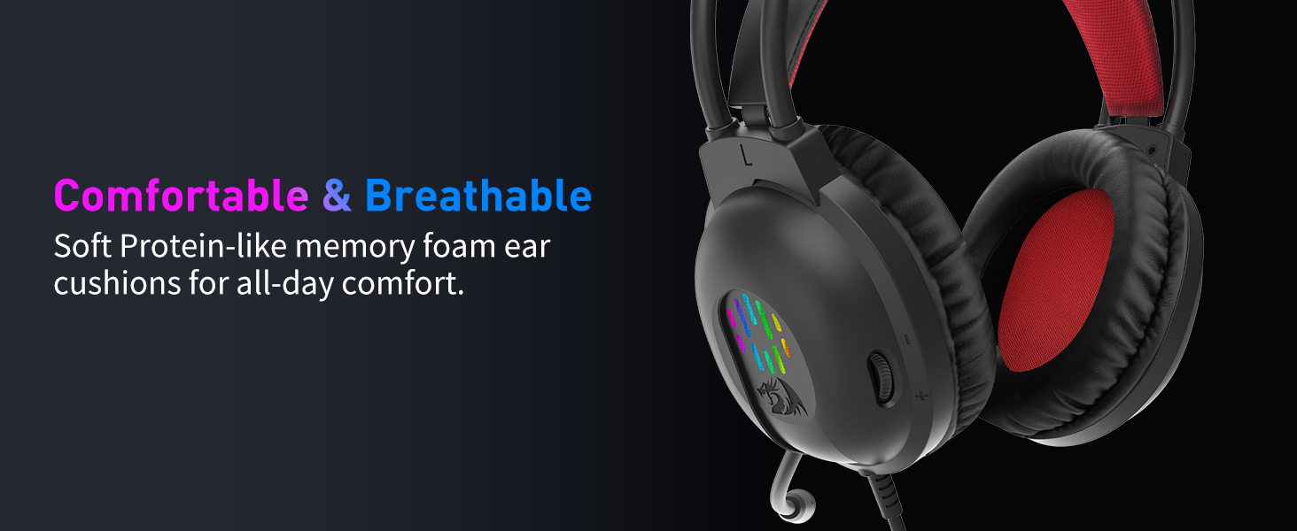 De pustende øreputene bidrar til å redusere trykket på ørene, mens den lette strukturen forhindrer tretthet ved langvarig bruk.