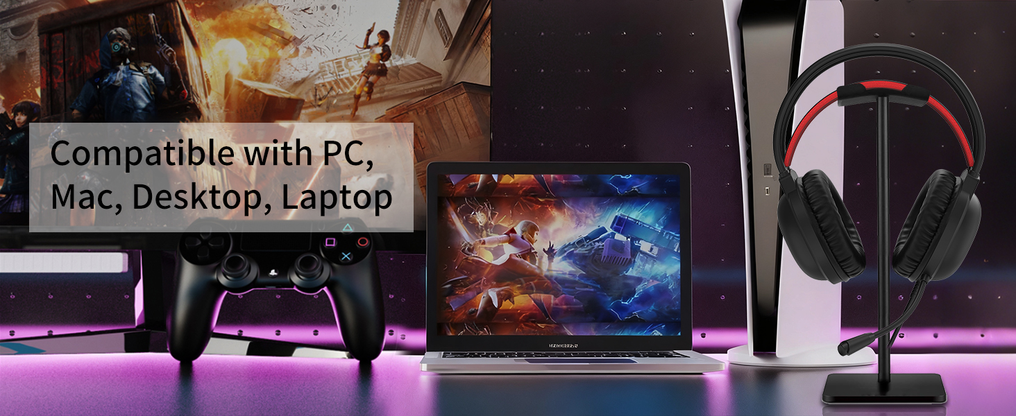 Dette headsettet er kompatibelt med et bredt spekter av enheter, inkludert spillkonsoller, PC-er, bærbare datamaskiner og mobile enheter som støtter standard lydtilkoblinger.