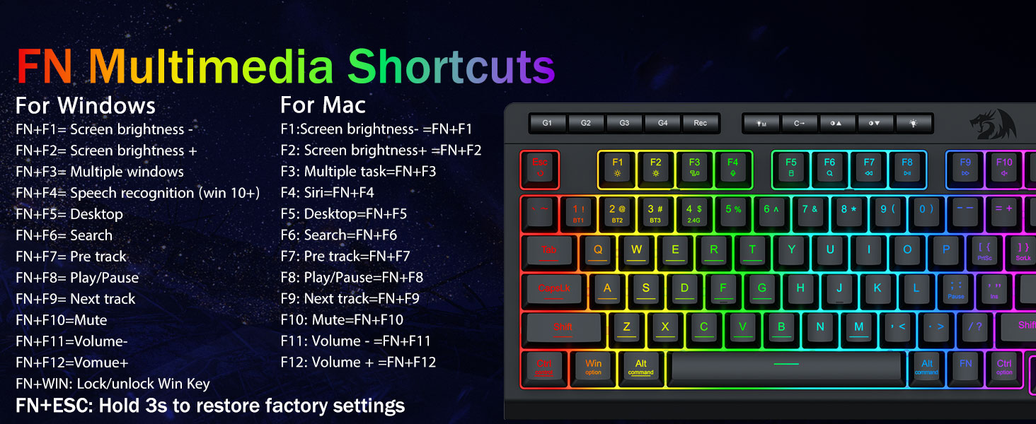 Pro-Grade spillytelse og dedikerte bakgrunnsbelyste kontroller- Med anti-ghosting-taster (taster med understrek) som lar 26 taster fungere samtidig for raske og nøyaktige spillresponser slik du hadde tenkt. Hurtigtilgangsknapper for lysstyrke, lysmodus og spillmodus for raskt å justere lysstyrke, lysprofiler og aktivere spillmodus med et knappetrykk.