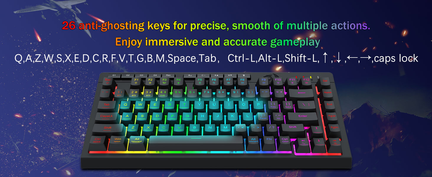 Tri-Mode Allsidighet og Multi-Device Mestring- Slipp løs 16,8 millioner RGB-farger med 8 forhåndsinnstilte moduser (Rainbow Wave, Reactive Typing) + 6 DIY-profiler.