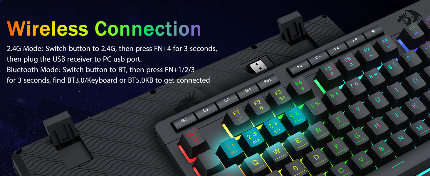 Tri-Mode Allsidighet og Multi-Device Mestring- Bytt sømløst mellom Bluetooth 5.0, 2.4GHz trådløs eller USB-C kablet modus, og koble til opptil 5 enheter samtidig (PC, Mac, nettbrett, telefoner, PS/XBOX).