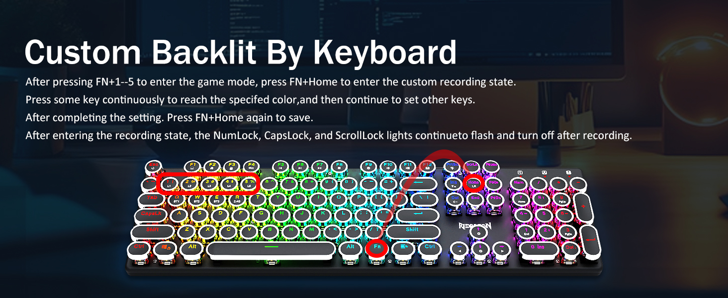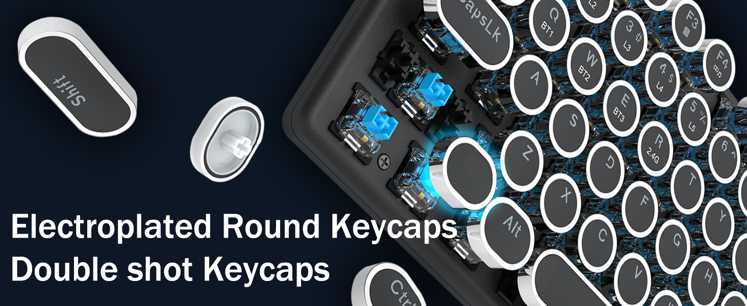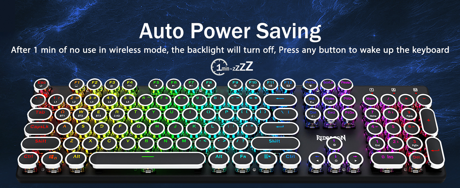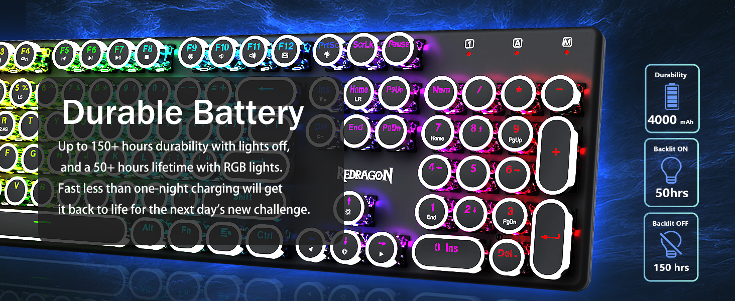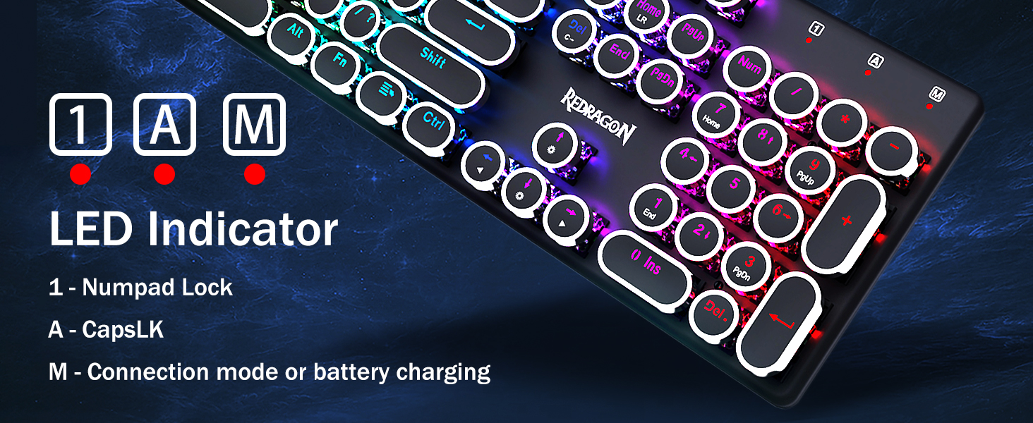 𝗥𝗲𝘁𝗿𝗼 𝗧𝘆𝗽𝗲𝘄𝗿𝗶𝘁𝗲𝗿 𝗦𝘁𝘆𝗹𝗲 𝘄𝗶𝘁 𝗠𝗲𝗰𝗵𝗮𝗻𝗶𝗰𝗮𝗹 𝗞𝗲𝘆𝘀 -Redragon Mechanical blå brytere tilbyr middels motstand, hørbar klikkklatt lyd og taktil tilbakemelding, gir responsivt og presist spillmiljø og ytelse. Vintage runde steampunk-tastaturer ser ut som en klassisk skrivemaskin, gir deg komfortabel skrivefølelse og stabil klikkberøring.