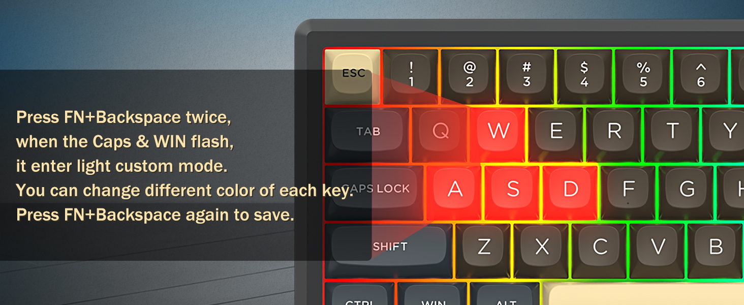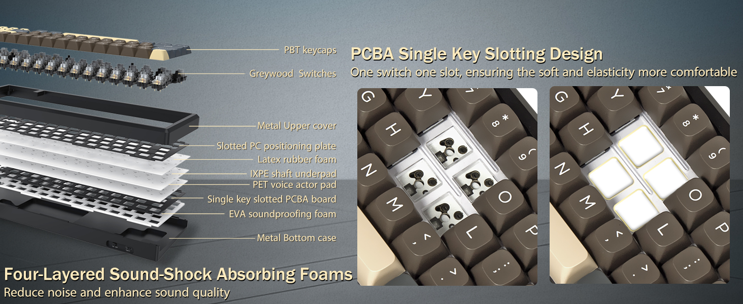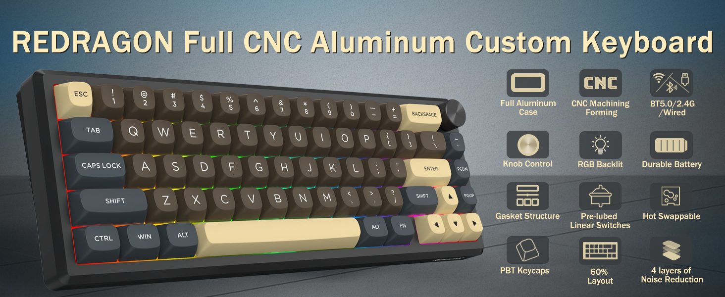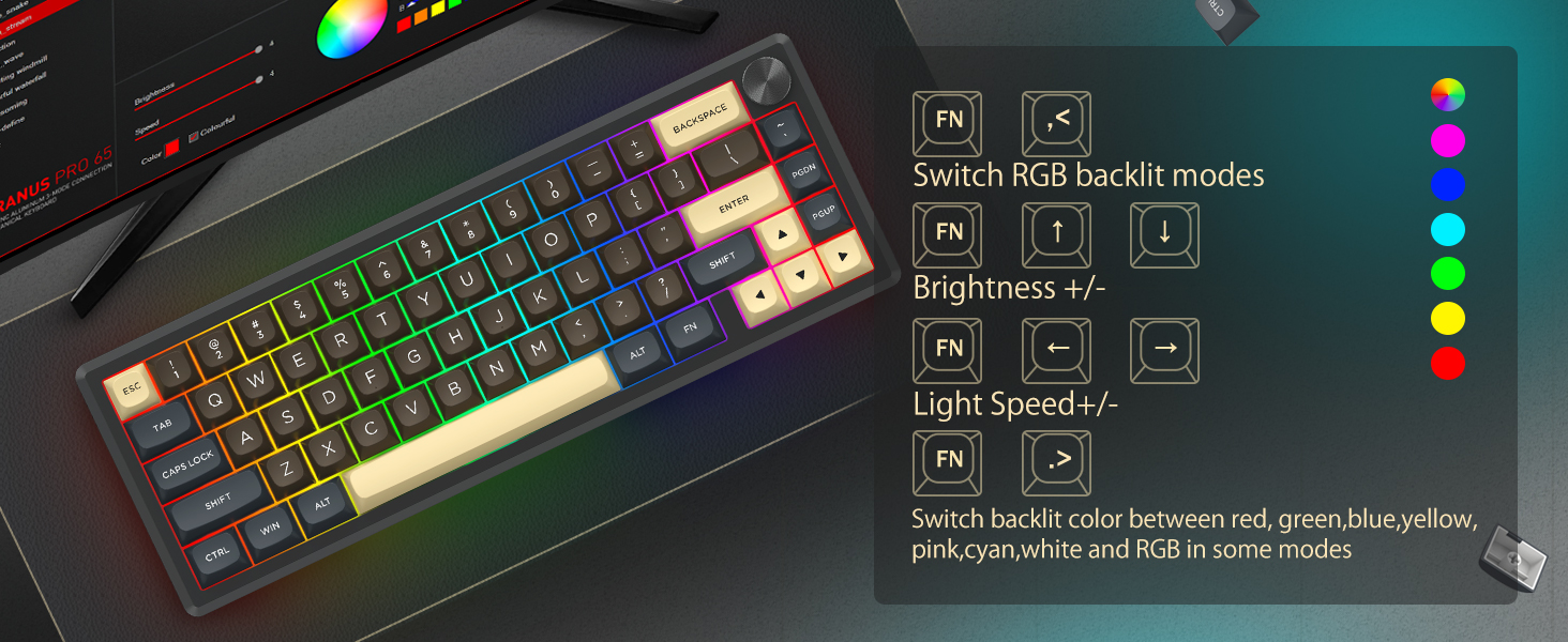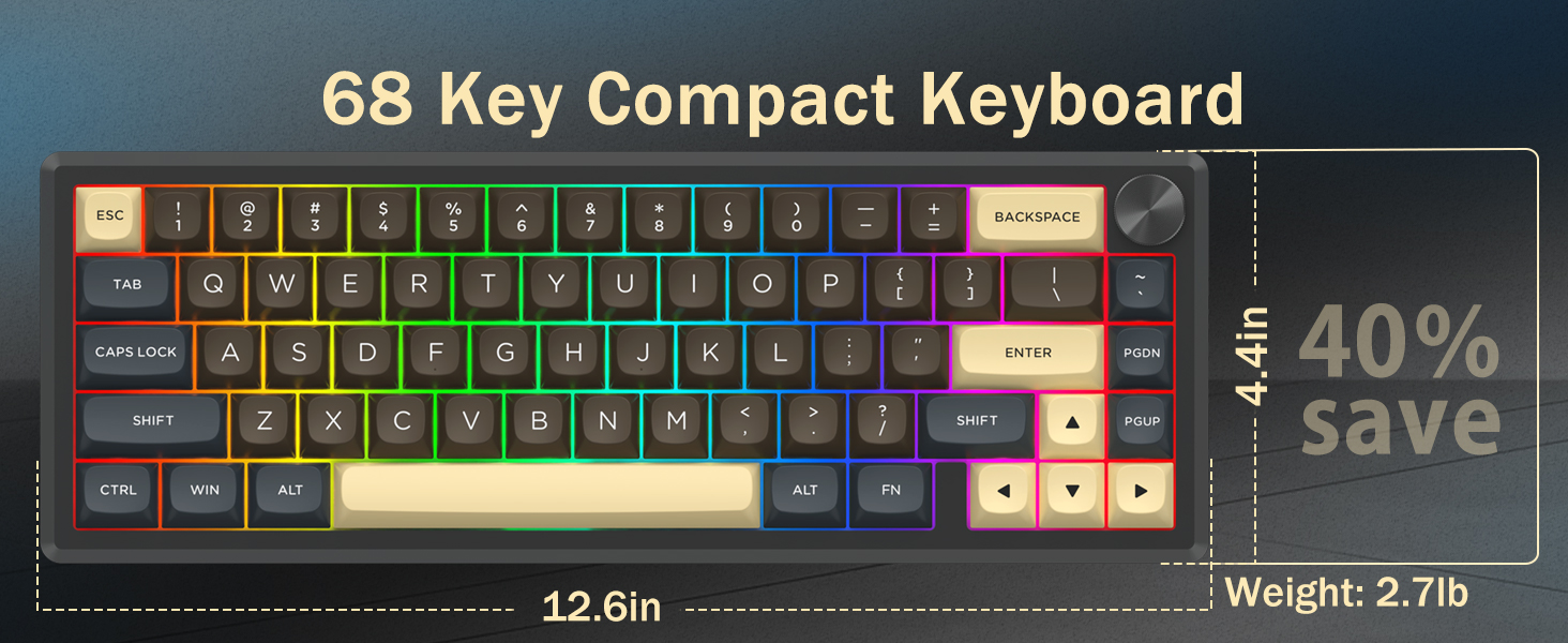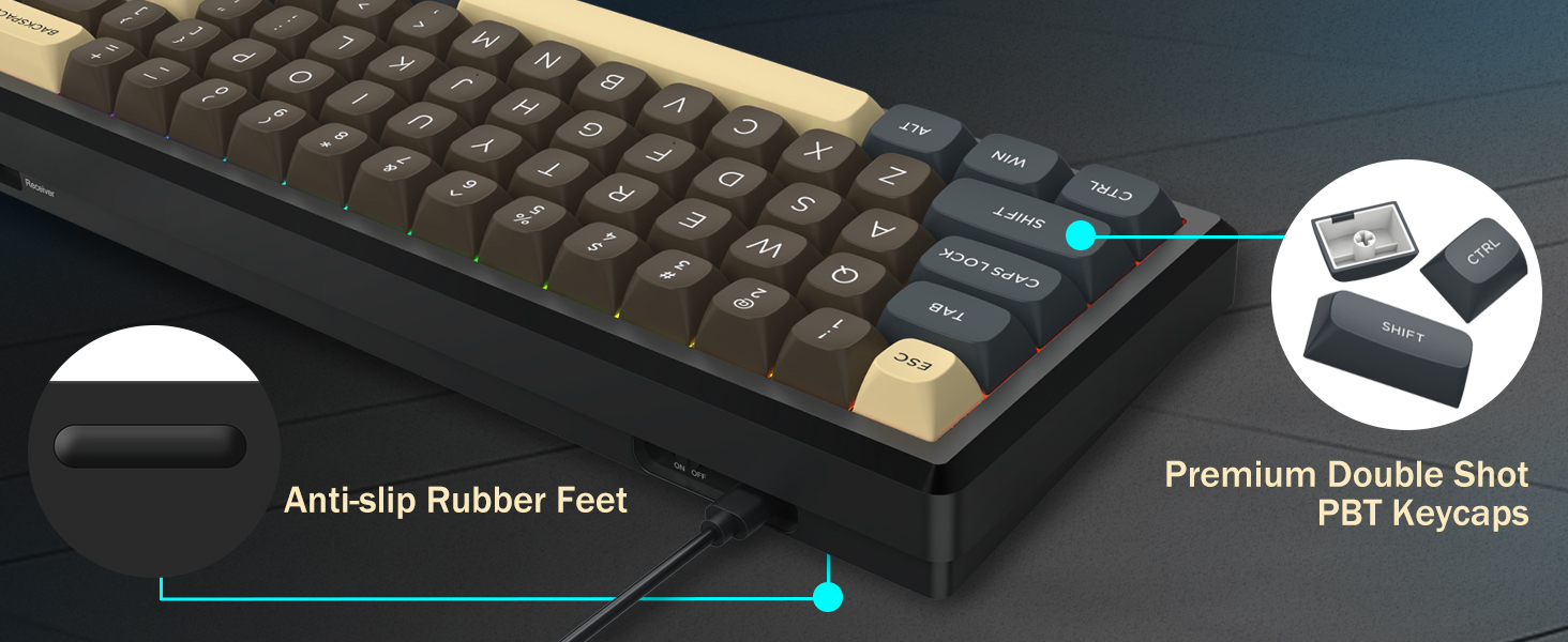 Med 60 % layout fjerner dette tastaturet ikke-essensielle taster samtidig som det beholder kjernefunksjonaliteten gjennom tastekombinasjoner. Denne designen bidrar til å redusere rot på skrivebordet og gir mer plass til musebevegelser, noe som gjør den egnet for både spill- og produktivitetsmiljøer.
