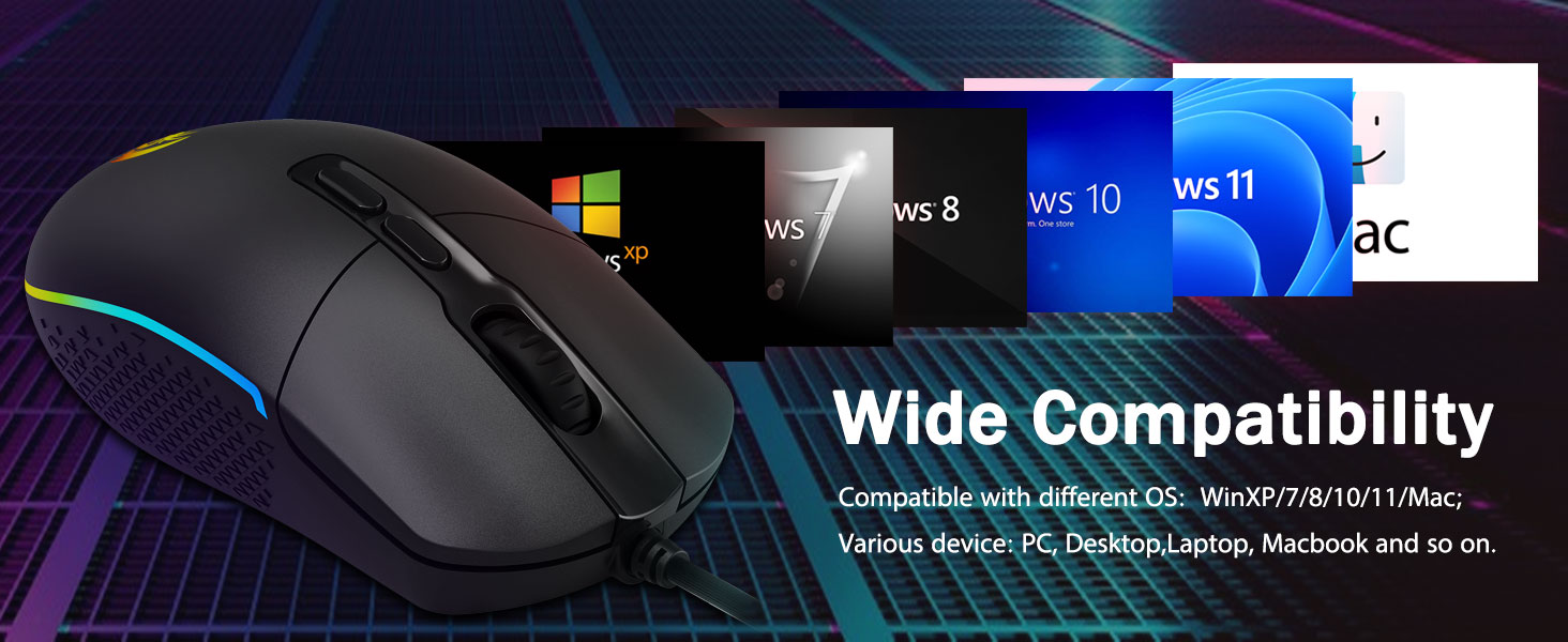 Valget av hardbarkede spillere- Enten du sikter, sikter, skjærer eller angriper, er en profesjonell spillmus ditt beste våpen! Musen vil være din ideelle partner. Perfekt kompatibel med Windows XP/Vista/Win7/Win8/Win10/ME/2000/Mac, etc.