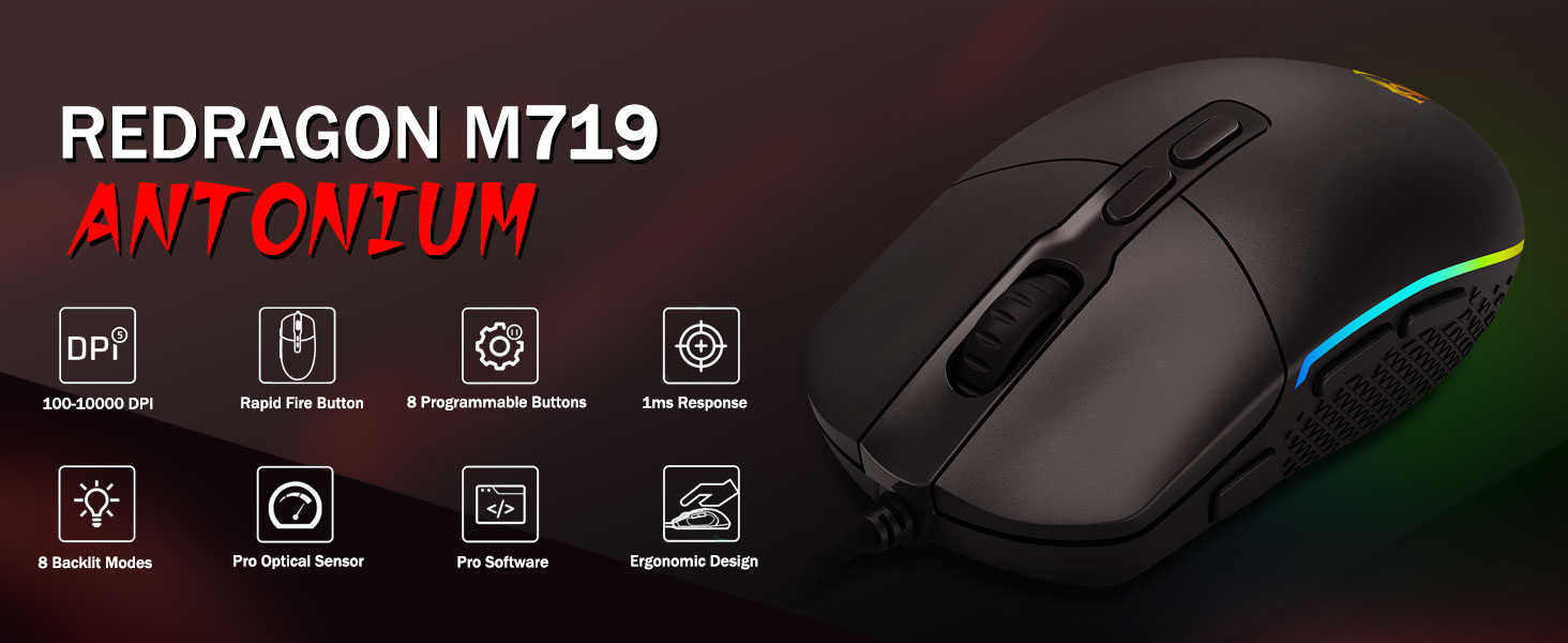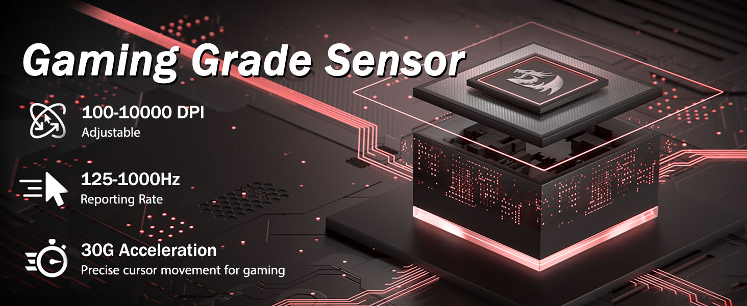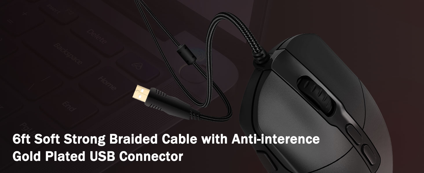 5 justerbare DPI-nivåer og 4 pollingfrekvens- M719-musen er designet med 5 tilgjengelige DPI-nivåer: DPI 400/800/1600/2400/4000. enkelt å bytte mellom ulike spillbehov. DPI kan justeres fritt med ±100 fra 100 til 10000 via programvare for å møte alle dine behov. 4 pollingfrekvens er justerbar: 125Hz/250Hz/500Hz/1000Hz, høy pollingfrekvens sikrer en jevn og rask bevegelse.