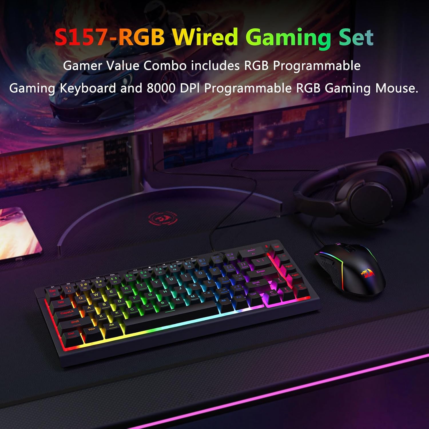 Black S157 RGB bakgrunnsbelyst kablet spilltastatur og mus-kombinasjon gir konsistent ytelse på tvers av ulike scenarier. Tastaturet støtter nøyaktige tastetrykk, mens musen gir pålitelig sporing for navigasjon og spilling.