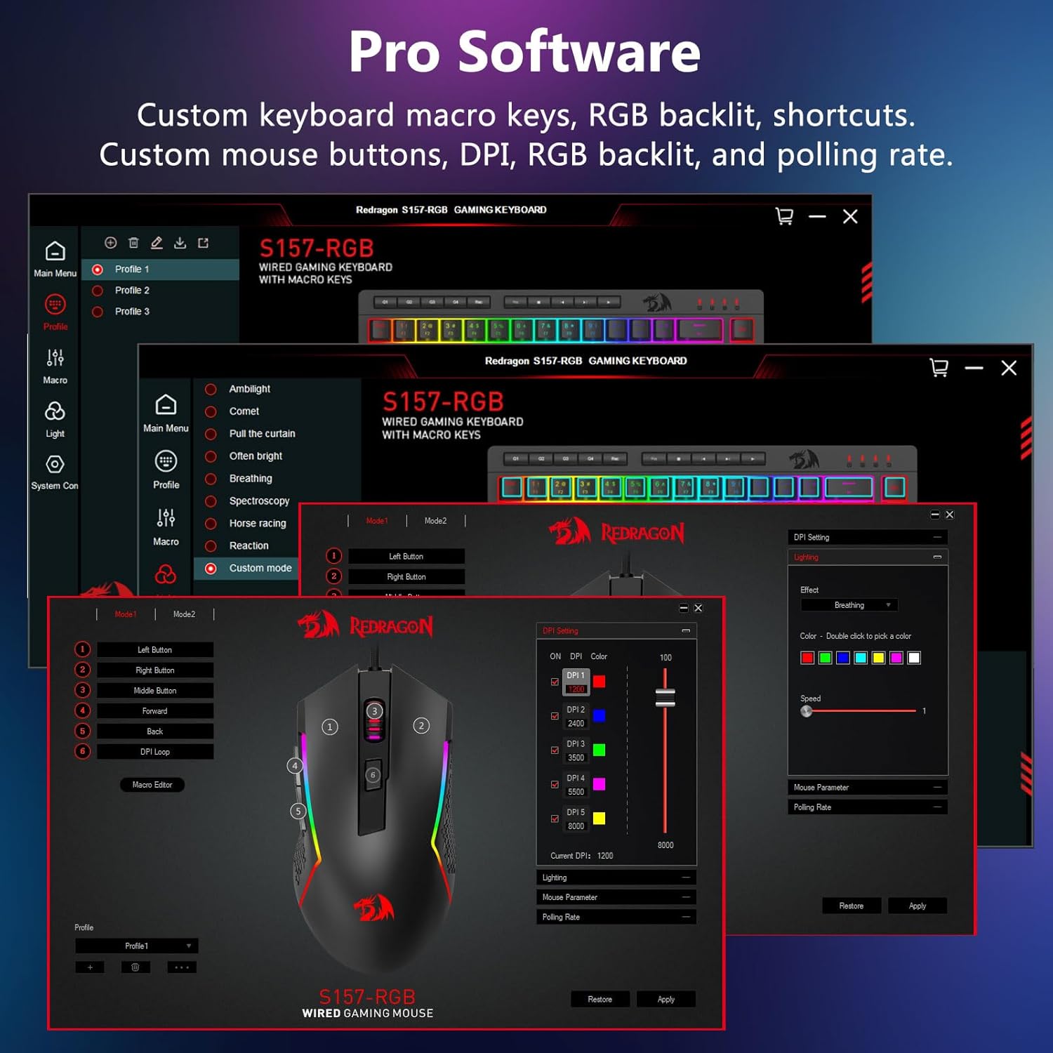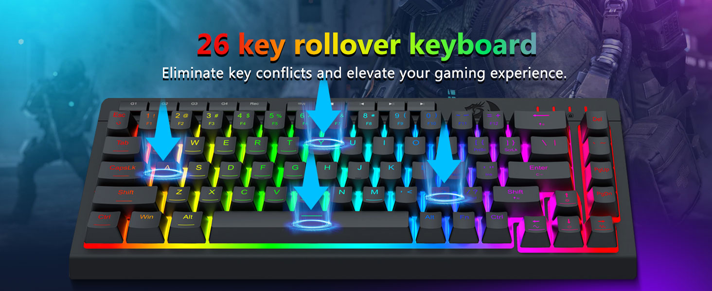 Integrert RGB-belysning forbedrer nøkkelsynlighet i svake omgivelser. Lyssystemet tilbyr flere moduser, slik at brukere kan justere lysstyrke og effekter i henhold til deres preferanser.