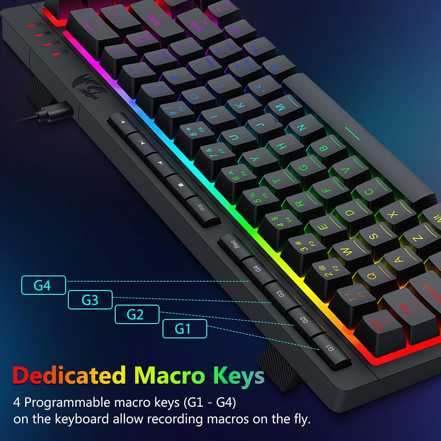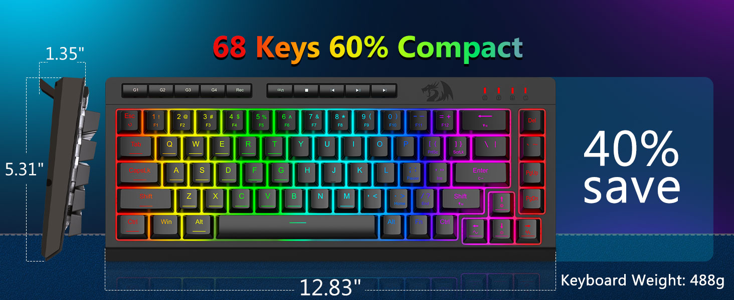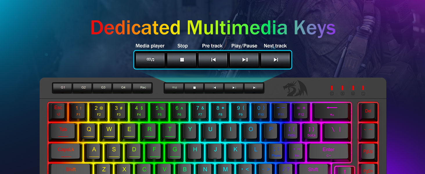 RGB-belysningen forbedrer brukervennligheten i dårlige lysforhold, slik at brukere enkelt kan finne nøkler uten å påvirke konsentrasjonen.