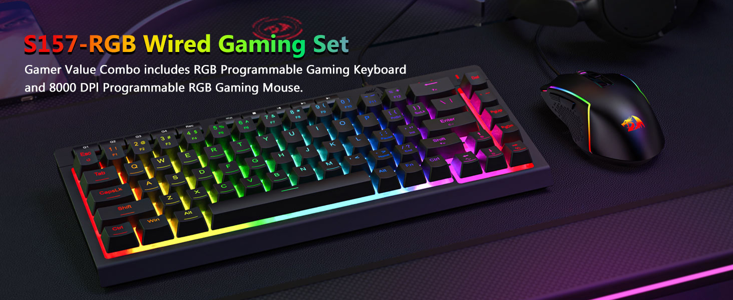 Black S157 RGB Backlit Wired Gaming Keyboard and Mouse Combo tilbyr en praktisk kombinasjon av ytelse, holdbarhet og brukervennlighet. Tastaturet i full størrelse, den responsive musen og den stabile kablede tilkoblingen gjør den egnet for både spill og hverdagslige dataoppgaver.