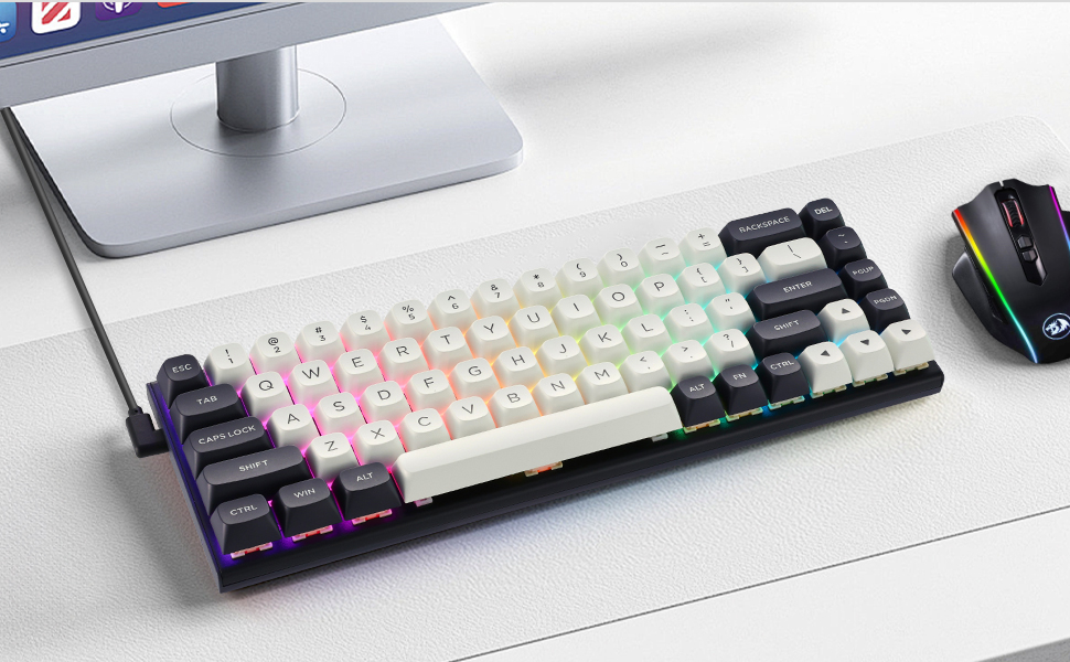 Oppsettet på 60 % fjerner funksjonsraden, navigasjonsklyngen og det numeriske tastaturet, noe som resulterer i et mindre fotavtrykk. Denne designen gir mer plass til musebevegelser, noe som gjør den ideell for spilloppsett med begrenset plass på skrivebordet.