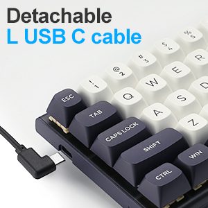 Tastaturet har en minimalistisk design med et rent hvitt eller blå-svart fargeskjema, egnet for både spill og profesjonelle miljøer. Den kompakte strukturen lar brukerne opprettholde et mer organisert arbeidsområde.