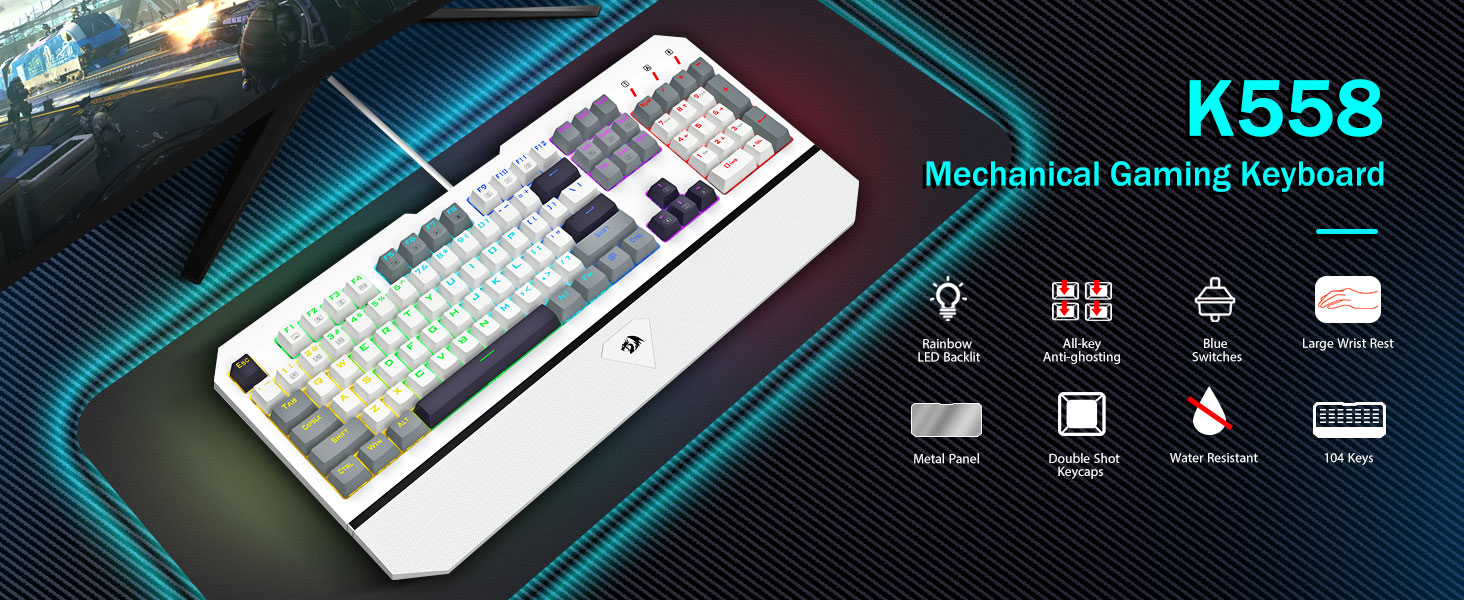 【100 % Anti-Ghosting og 11 multimediesnarveier】Nyt sømløs skriving med 100 % anti-ghosting-teknologi, slik at alle tastene kan registreres samtidig, uansett hvor raskt du skriver. Med 11 multimedietastsnarveier kan du raskt få tilgang til funksjoner som kalkulator, mediekontroll, volumjustering. Det mekaniske spilltastaturet K558, komplett med talltastatur, øker produktiviteten din. Kompatibelt med Windows 7/8/10/XP/VISTA/95/98/2000/ME og Mac OS, Xbox, etc., har dette tastaturet en levetid på opptil 50 millioner tastetrykk.