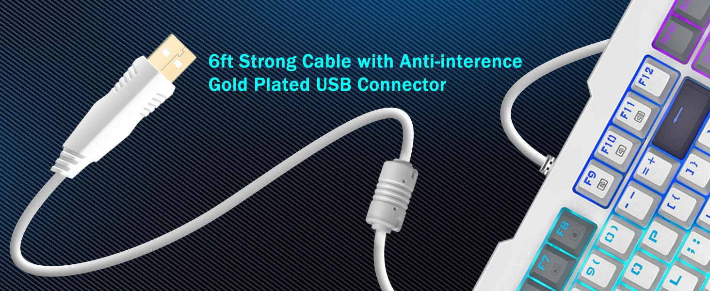 【High-end 104-tasters tastatur i full størrelse】Laget med en metalllegering av topp kvalitet og ABS-materiale, er tastaturpanelet ekstremt solid, motstandsdyktig mot riper. Den gullbelagte USB-kontakten sikrer en stabil, pålitelig tilkobling for ultimat spillytelse. Med en vekt på 1,39 kg føles dette tastaturet som en solid tank i hendene dine, og gir uovertruffen stabilitet under bruk.